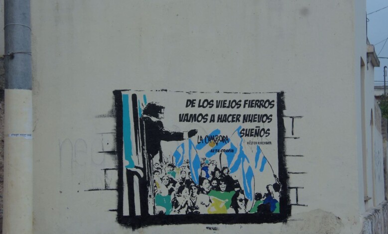 Es el caso de una pintada, de gran calidad, realizada en la esquina de San Juan Bosco y España, donde se puede ver a Néstor Kirchner saludando al pueblo.