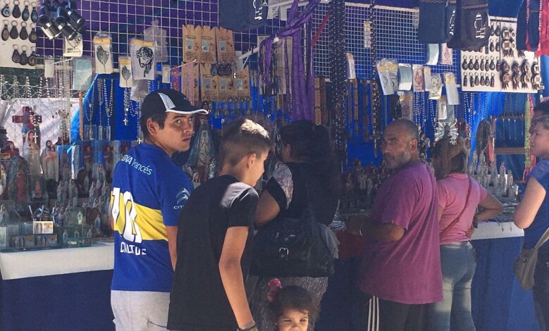 Los puesteros que se ubicaron a la vera de la calle Pedro Bútori durante la festividad de la Virgen de Lourdes le pusieron toda la garra, pero no alcanzó. Mucho trabajo, mucha inversión, y poca venta.