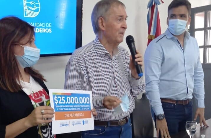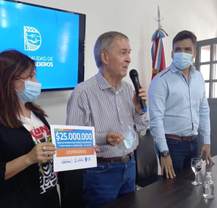 Posteriormente, las autoridades se trasladaron al Centro Cultural Juan Carlos Cimadamore, para realizar la firma de un convenio proveniente del Fondo Complementario de Obras de Infraestructura para Municipios, Comunas y Comunidades Regionales por 25 millones que el municipio afectará para la pavimentación de la Avenida La Plata, vía de ingreso a la ciudad por Ruta 36.