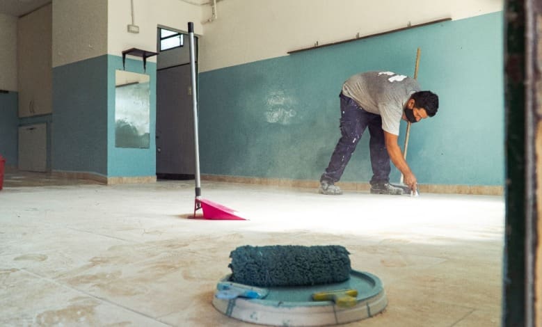 • Se llevó a cabo la limpieza en aulas con lavandina y cepillado, como así también se desarrollaron trabajos de pintura en las mismas.