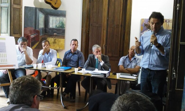 En la mesa de expositores, para evacuar consultas de los interesados, estuvieron presentes Gustavo Caranta (Director de Ambiente municipal), Héctor Bupo (Secretario de infraestructura), Guillermo Vilchez (miembro del equipo de obras públicas), Fabián Giuppone (técnico del Grupo Dinosaurio) y Pablo Mazzini (integrante de la firma Sima Ambiente, que redactó el Estudio).