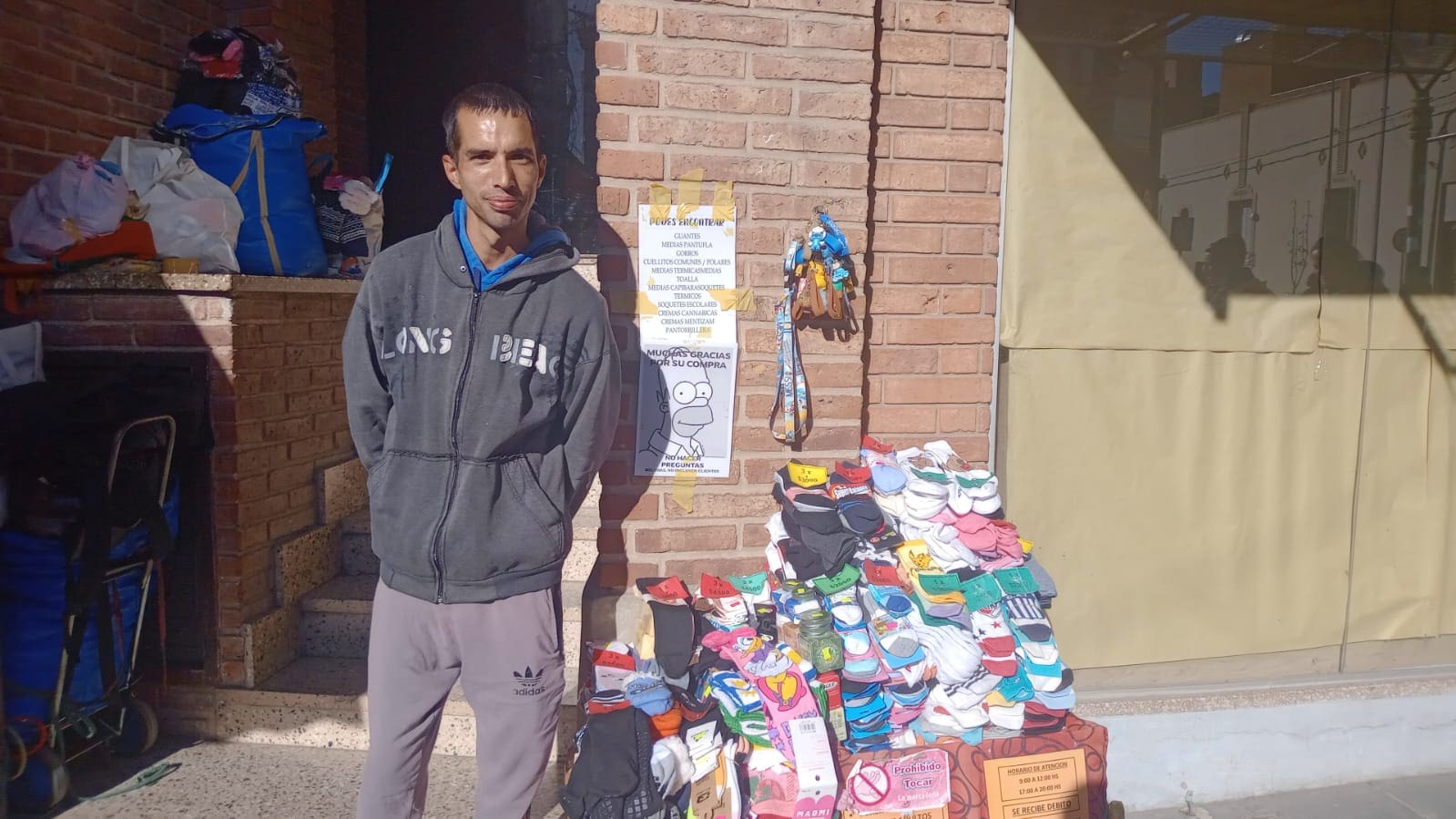 «He trabajado entregando volantes en muchos lugares, estuve en Bomberos tres años donde aprendí muchísimo, siempre agradecido. Lo importante es portarse bien y trabajar sin hacerle mal a nadie», añade el joven quien también oficia de portero del edificio del lugar donde vende sus artículos.