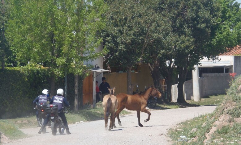 El pasado sábado, dos caballos se encontraban deambulando en plena Av. Malvinas Argentinas en horas del mediodía. Uno de los testigos de lo que ocurría llamó a la Policía; minutos después aparecieron dos uniformados en motocicleta, que se encargaron de arriar (siempre en moto) los animales hasta zonas más descampadas y ubicarlos en un lugar alternativo y cercado. Testigos de lo ocurrido manifestaron su sorpresa por el traslado de los caballos y el peligro que eso significó entre automovilistas, motos y peatones.