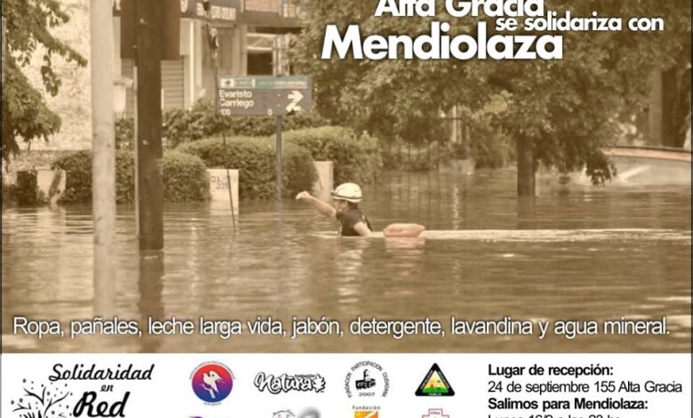 A través de la campaña «Alta Gracia se solidariza con Mendiolaza», Solidaridad en Red en conjunto con diversas ONG, ayudará a los damnificados por las recientes inundaciones en esa localidad cordobesa.