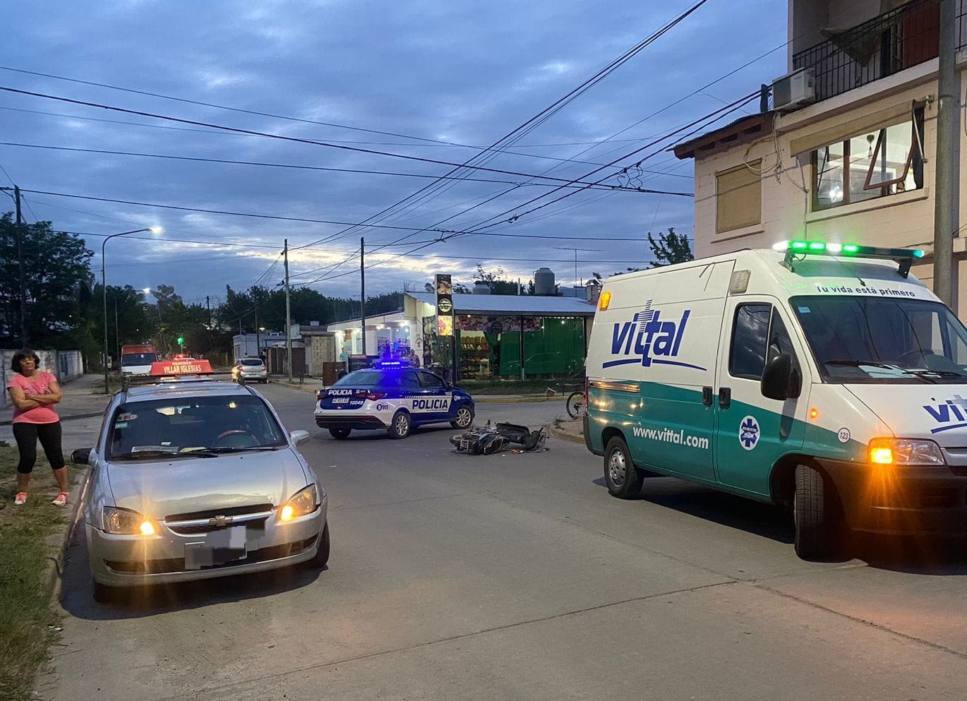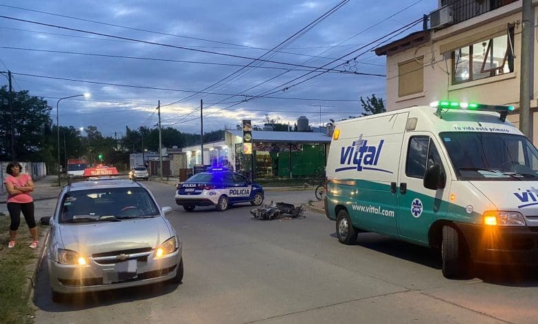 Un Chevrolet Corsa que funciona como remis, al mando de una mujer de 61 años, colisonó contra motocicleta Beta 110 cc, en la que circulaba un joven de 31 años.