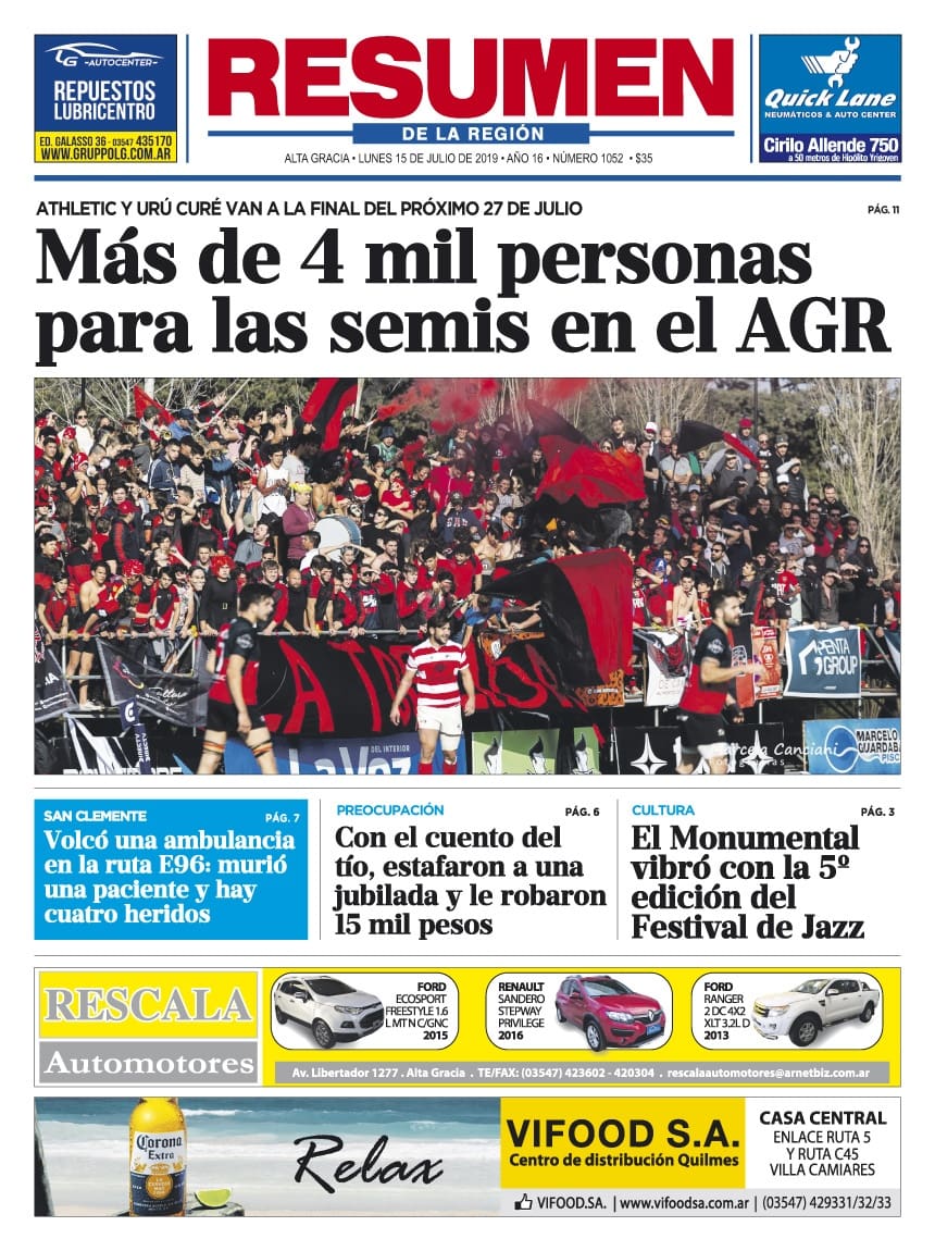 Facebook X LinkedIn Pinterest Messenger Messenger WhatsApp Telegram Compartir por e-mail Imprimir Tapa edición impresa lunes 15 de julio Nº1052 15/07/2019Actualizado: 15/07/20190 33 Menos de un minuto Facebook X LinkedIn Pinterest Messenger Messenger WhatsApp Telegram Compartir por e-mail Imprimir Mostrar más Compartir Facebook X LinkedIn Pinterest Messenger Messenger WhatsApp Telegram Compartir por e-mail Imprimir