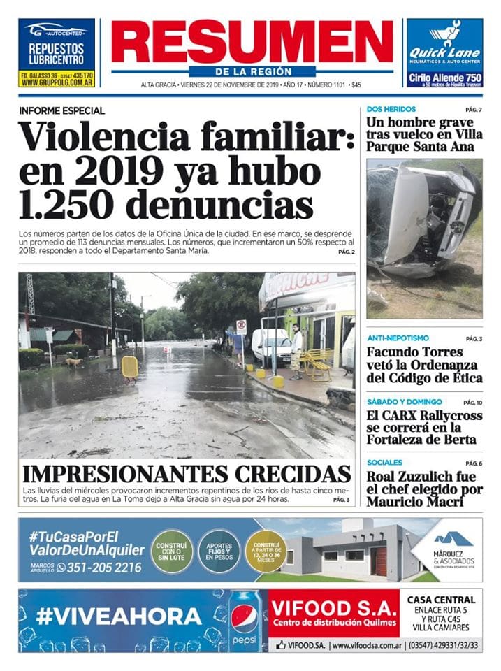 Tapa edición impresa viernes 22 de noviembre de 2019