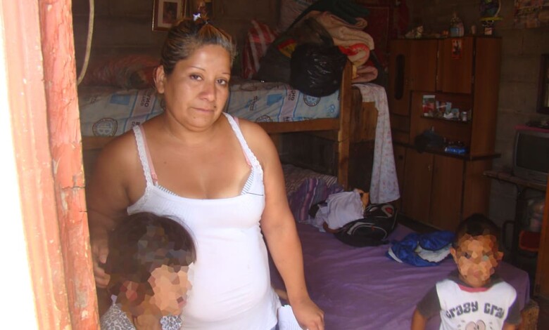 Adela Rodríguez sobrevive en una casilla ubicada en barrio 1º de Mayo. Ella y sus dos hijas fueron echadas a la calle por la familia de su ex marido hace pocos días. Luego de buscar un lugar donde vivir, se alojó momentáneamente en la casa de otra de sus hijas, que además tiene 3 niños.