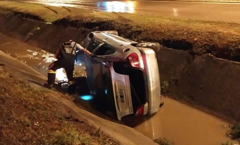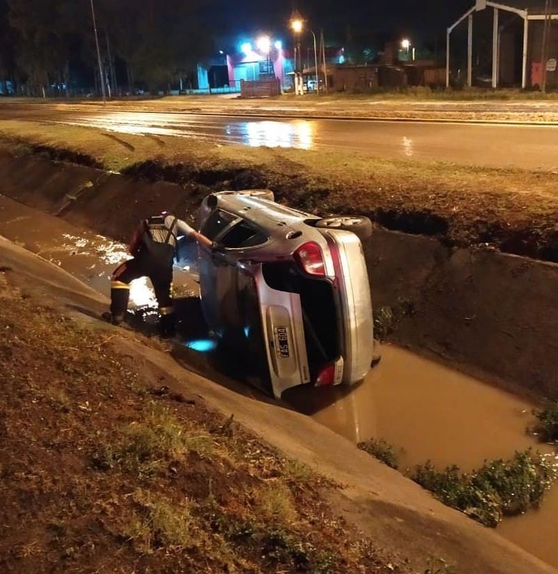 Personal Policial entrevistó a un hombre de 45 años quien declaró que mientras se conducía en su Renault Megane, realizó una mala maniobra, terminando dentro del canal entre ambas vías.