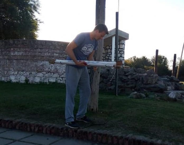 El candidato a intendente de Córdoba Cambia, Lucas Bettiol, junto a militantes de su partido salió a recorrer las calles de Malagueño para recoger la cartelería y los pasacalles que se utilizaron durante la campaña.