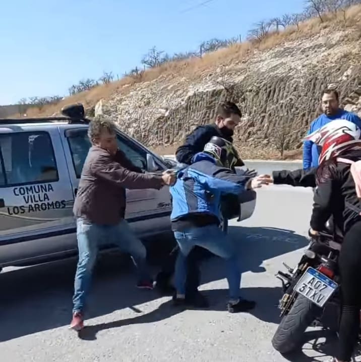 Cual «Relatos Salvajes», estos comenzaron a golpear el capot y parabrisas del automóvil con los cascos provocando varios daños. El automovilista descendió del vehículo y se agarró a golpes con éstos hasta que uno de ellos huyó del lugar. Así mismo, minutos después fue entregado a la policía por su padre, aunque se trataba de un menor de edad.