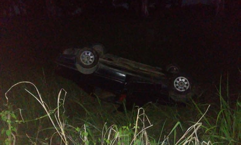 Allí, por causas desconocidas, un vehículo terminó tumbado en la banquina y con sus cuatro ruedas para arriba.