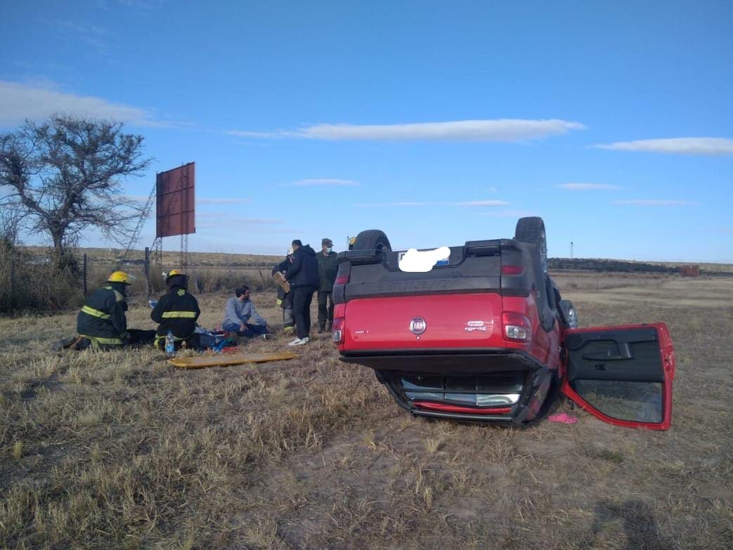 Por causas desconocidas, el conductor de un vehículo Fiat Strada, un hombre de 29 años que viajaba acompañado de una mujer de 28, perdió el control del rodado provocando un vuelco y quedando al costado de la ruta.