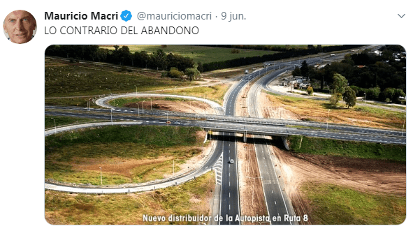 «…Venimos a denunciar al SEÑOR MINISTRO DE TRANSPORTE GUILLERMO DIETRICH por “ABANDONO DE RUTAS”, desde el mes de mayo de 2018 a la fecha se ha visto paralizada la obra vial pública nacional en un 95%, los despidos se han sucedidos por todas las rutas nacionales, no solo con los compañeros que construyen o reparan las carpetas asfálticas, sino también DESPIDOS a quienes desmalezan las banquinas, a las cuadrillas de banderilleros ( marcan la zonas de peligros sobre ruta por accidentes o rutas inundadas ), a los trabajadores de seguridad vial ( asistentes de los automovilistas ante una rotura de sus vehículos en ruta), a los trabajadores de las balanzas (han eliminado la totalidad de los controles de carga que limitan el exceso de peso de camiones que destruyen las rutas por sobrecarga) y desde luego también a los propios cobradores de peajes…”Peajistas”. De este modo inicia el escrito, el cual fue tomado y respondido por el mismo Mauricio Macri, quien a modo de refutación, subió una foto del nuevo distribuidor de la autopista en Ruta 8, a la que agregó: «Lo contrario de abandono».