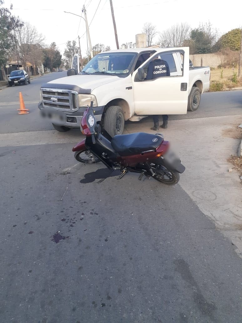 A bordo de la camioneta lo hacía un hombre de 37 años, mientras que en el rodado menor conducía un joven de 26 años, acompañado de una joven de la misma edad. Como consecuencia, el conductor de la moto sufrió fractura expuesta en el dedo anular del pie izquierdo y fue trasladado al Hospital Illia.