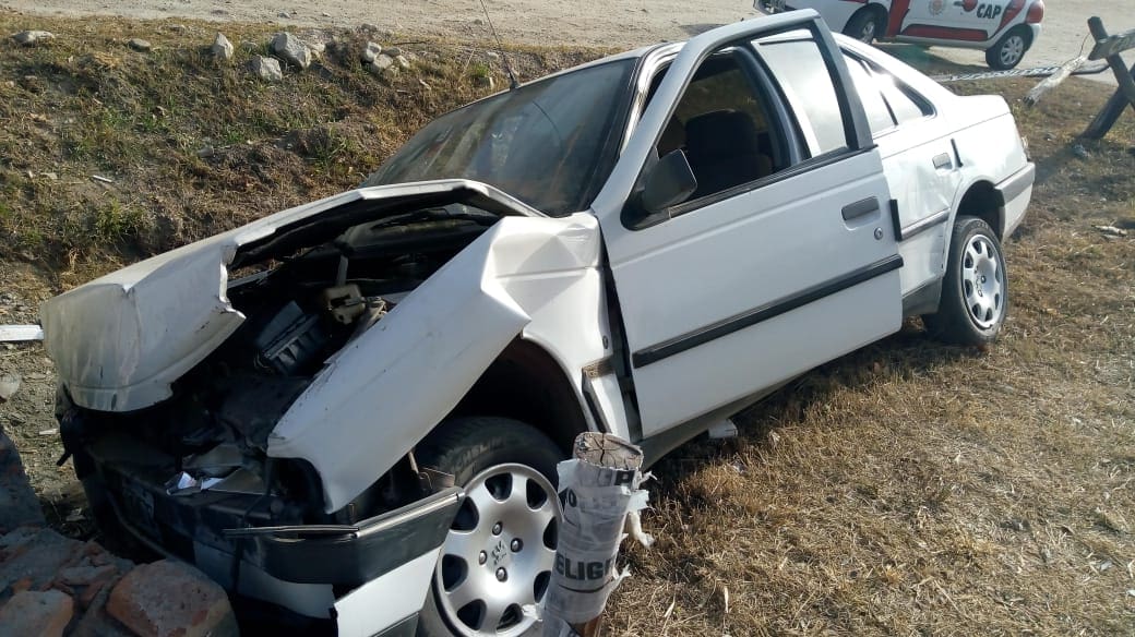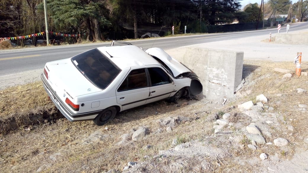 Por razones desconocidas el conductor de un vehículo Peugeot 505 despisto que se conducía por Ruta 5, perdió el control e impacto con una alcantarilla.