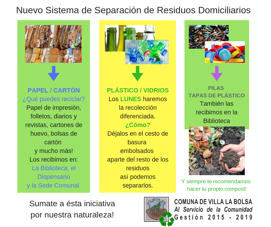 La Comuna de Villa la Bolsa he realizado un convenio con un empresa de reciclaje y busca que los vecinos separe sus residuos.