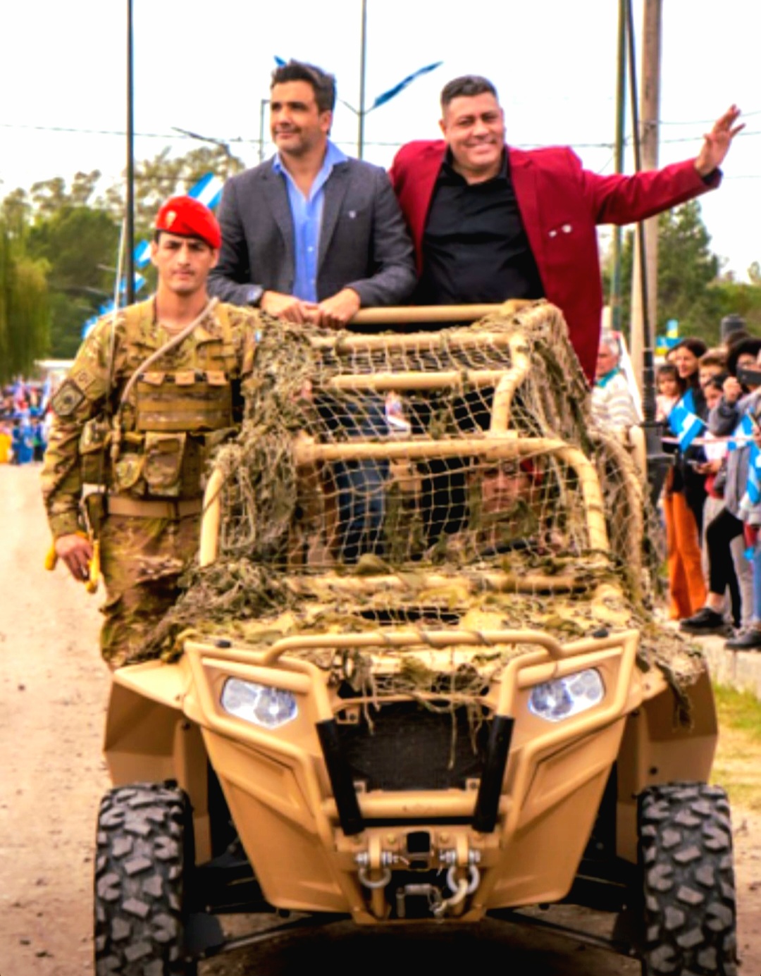 En la localidad de Villa del Prado Nelson Luján encaró su último desfile como Jefe Comunal y tuvo como invitado al Ministro Facundo Torres. Arriba del vehículo militar no dudaron en subirse el alcalde y el candidato a Legislador Departamental.